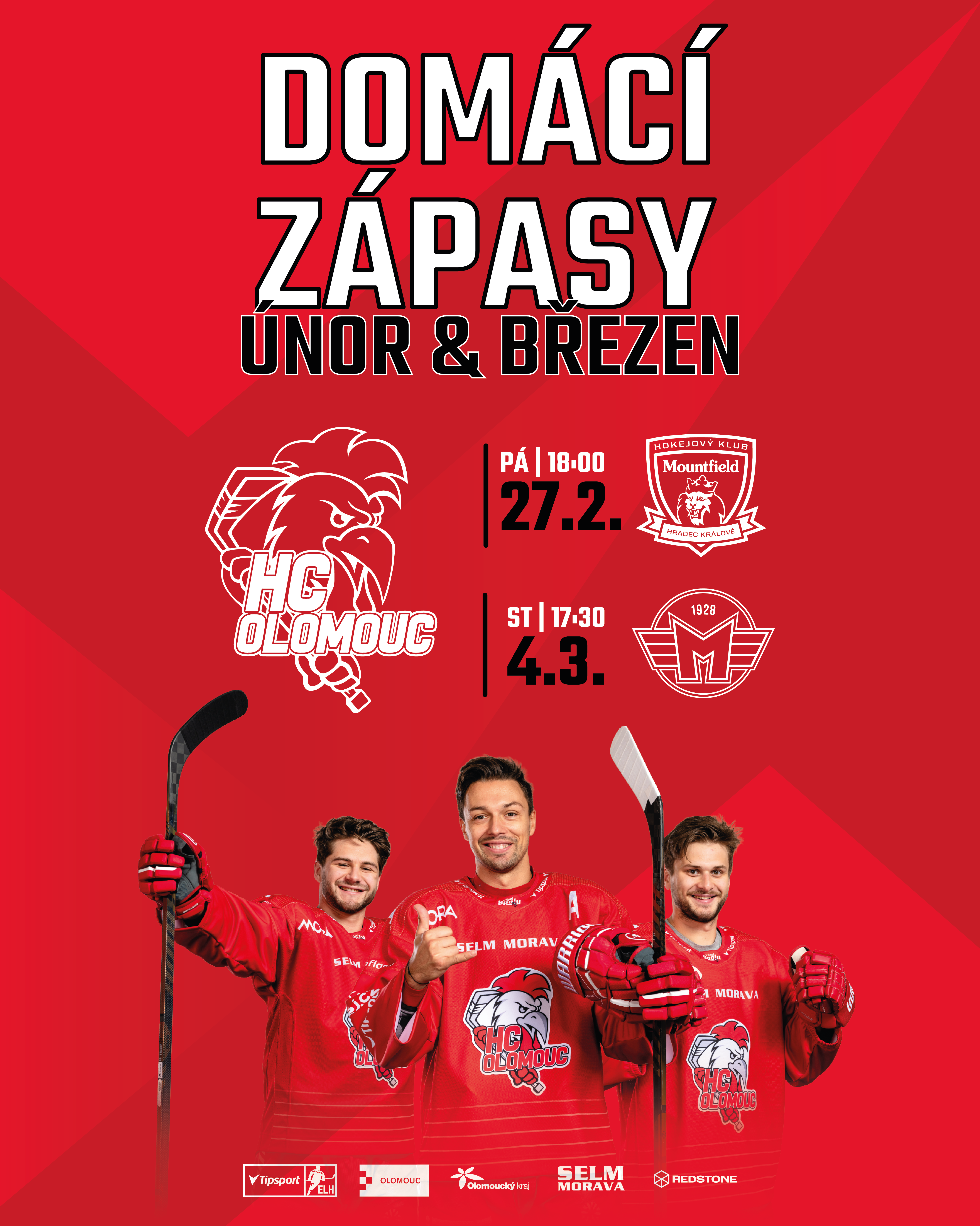 HC Olomouc zve všechny příznivce ledního hokeje na domácí zápasy, které se uskuteční v měsících únoru a březnu 2026.