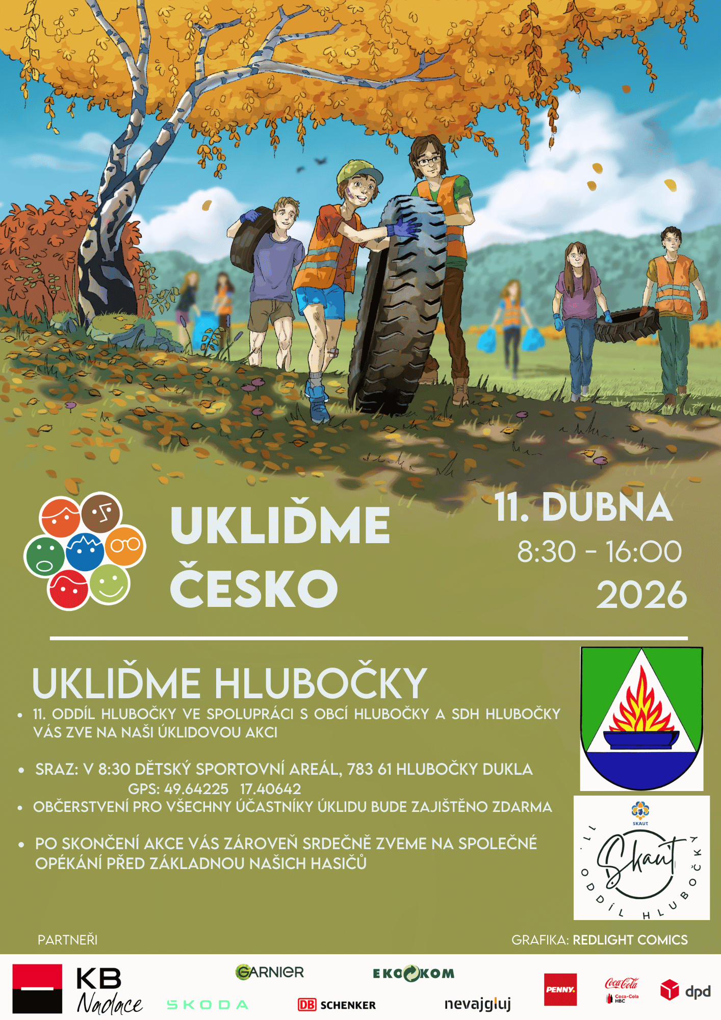 11. oddíl Skauti Hlubočky ve spolupráci s obcí Hlubočky a SDH Hlubočky zve všechny na úklidovou akci. Občerstvení bude pro všechny účastníky zajištěno. Po skončení akce jste srdečně zváni na společné opékání.