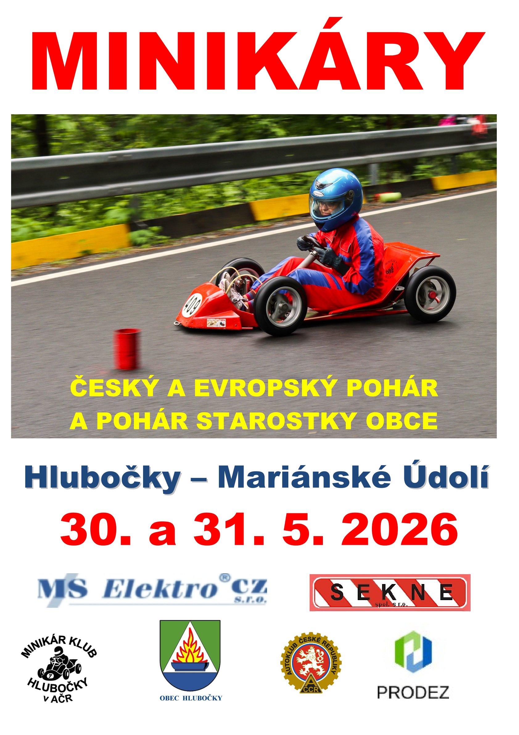Minikár klub Hlubočky v AČR zve občany na každoroční Český a Evropský pohár a pohár starostky obce v závodech Minikár.